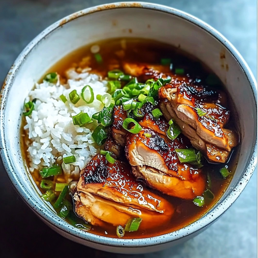 Caramelised Soy Chicken in Garlic Ginger Broth with Rice