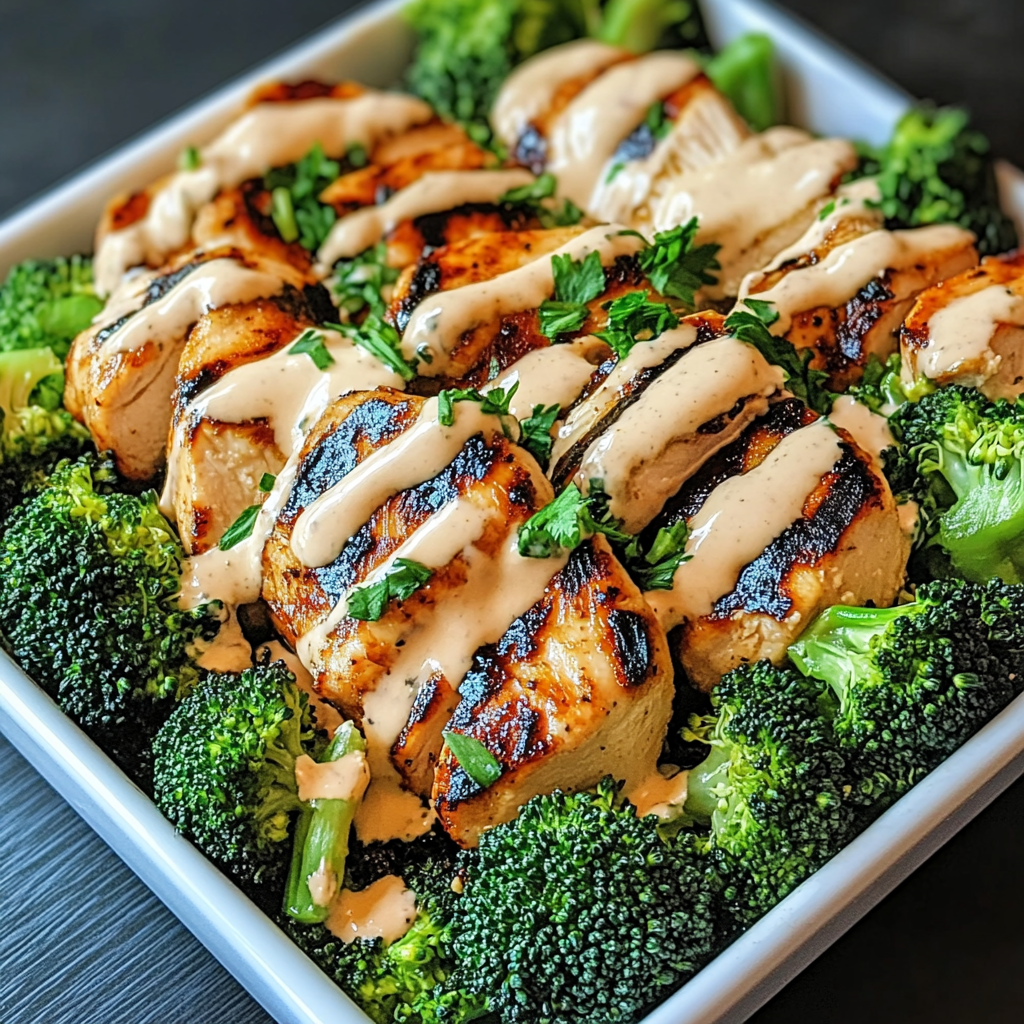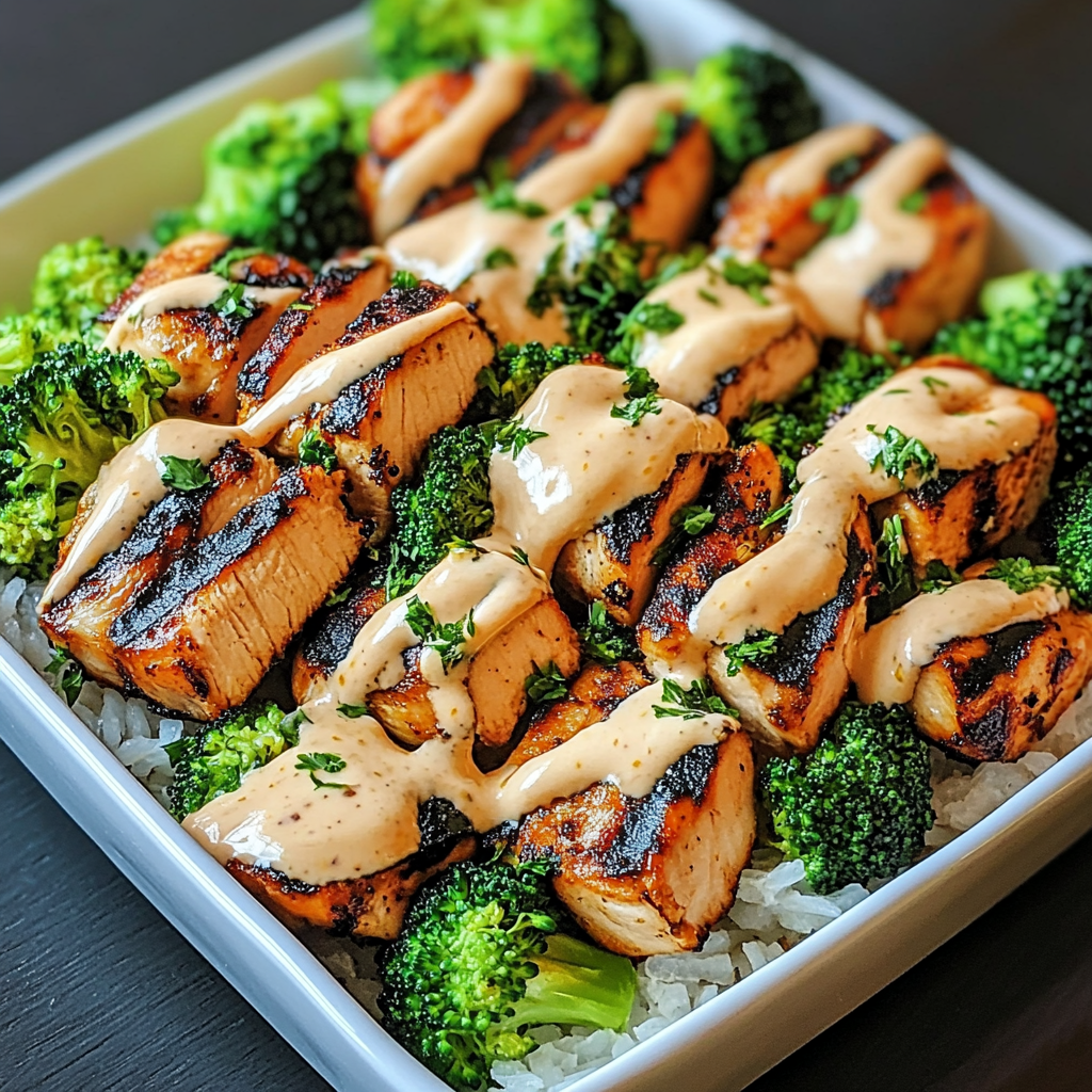 Grilled Chicken & Broccoli Bowls With Creamy Garlic Sauce Delight Your Taste Buds! This delicious and healthy meal combines tender, juicy grilled chicken with vibrant broccoli, all topped off with a rich, creamy garlic sauce. Perfect for busy weeknights or casual gatherings, this dish is sure to impress your family and friends. The balance of flavors and textures makes it a standout option for lunch or dinner.