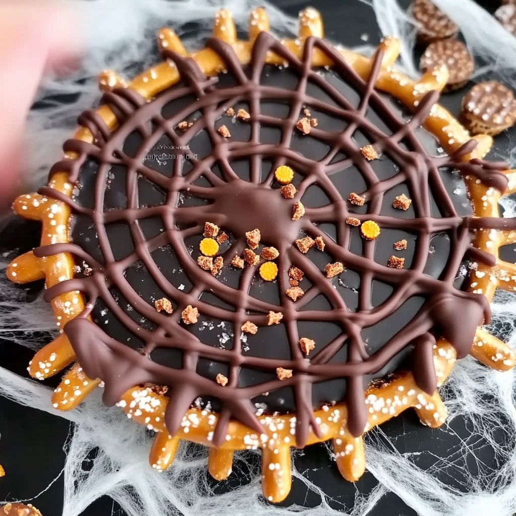 Halloween Chocolate Pretzel Spider Webs are delightful, sweet snacks made from pretzels coated in chocolate, decorated with chocolate webs, perfect for festive celebrations.