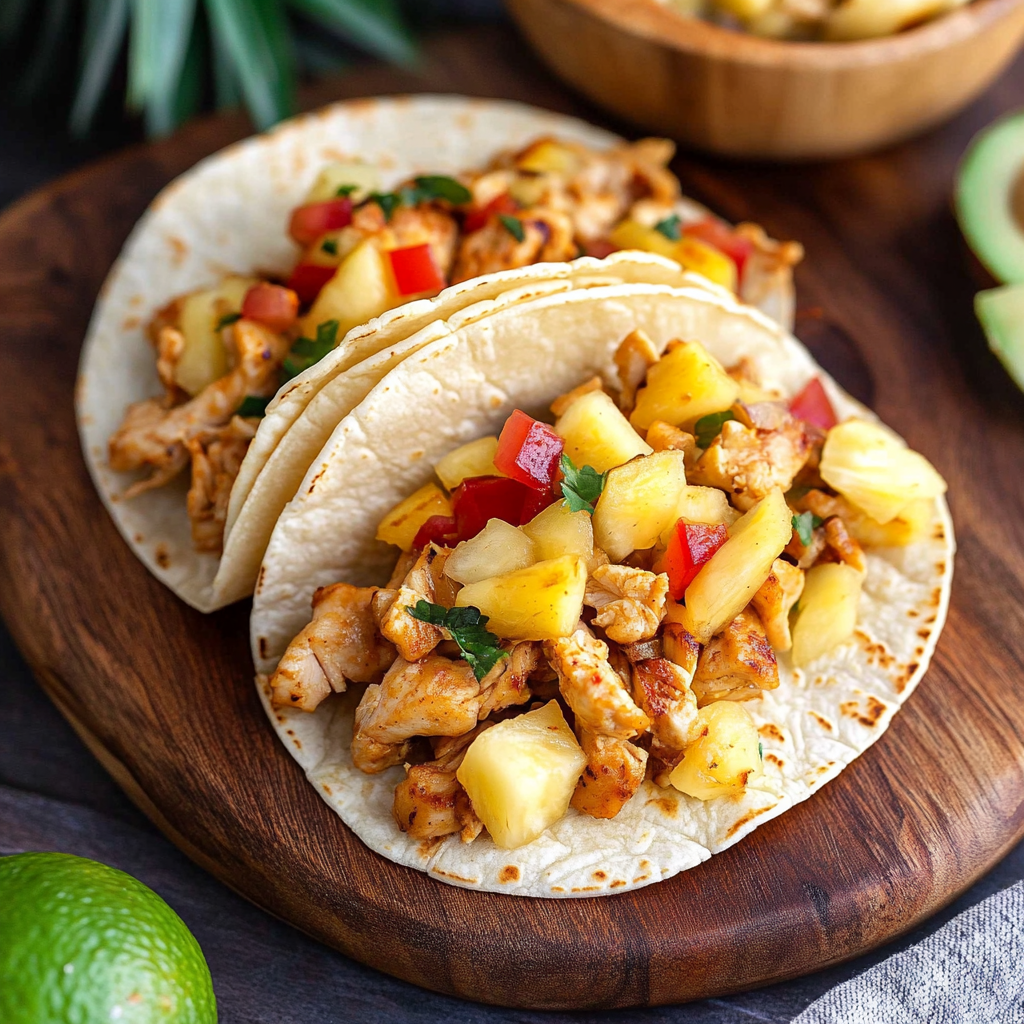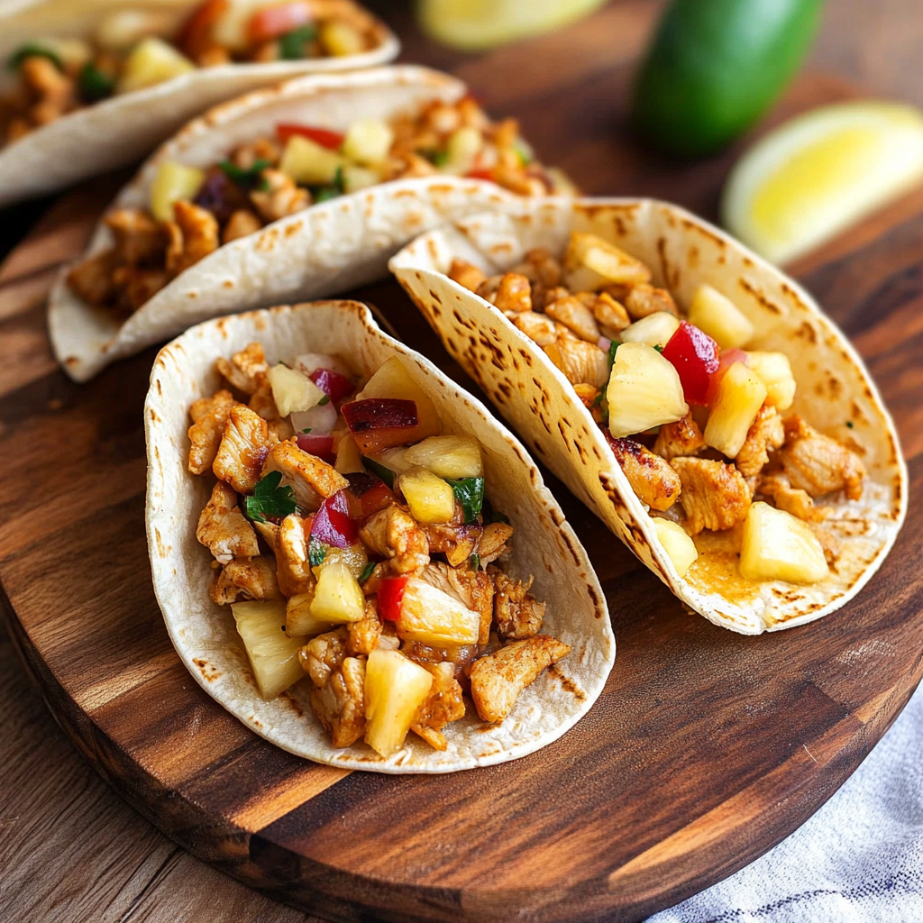Enjoy a tropical twist on taco night with these Pineapple Chicken Tacos! Juicy marinated chicken paired with sweet pineapple in soft tortillas creates a delicious balance of savory and sweet flavors.